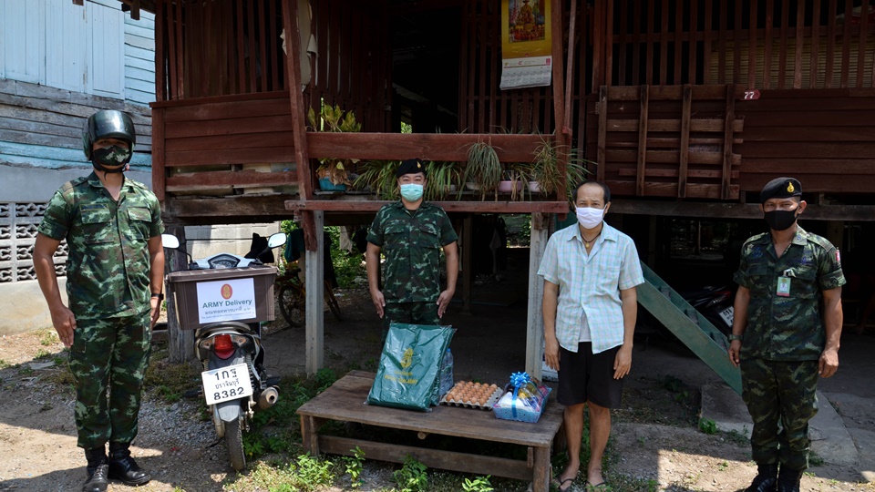 กรุงเทพฯ 9 พ.ค.-ผู้บัญชาการมณฑลทหารบกที่ 12 จัดชุด Army Delivery ส่งเครื่องอุปโภค-บริโภค ช่วยเหลือประชาชนที่ได้รับผลกระทบโควิด-19 พร้อมจัด จนท.จาก รพ.ค่ายจักรพงษ์ ตรวจสุขภาพประชาชนในพื้นที่ชุมชนบ้านกลางเมือง จ.ปราจีนบุรี