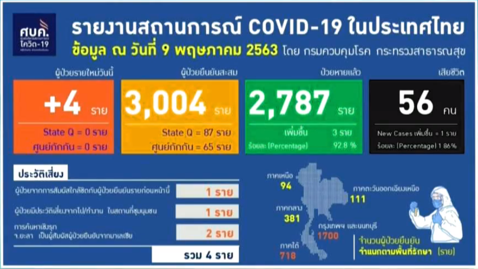 BANGKOK, May 9 (TNA) – Four more people infected with the coronavirus disease 2019 (COVID-19) were