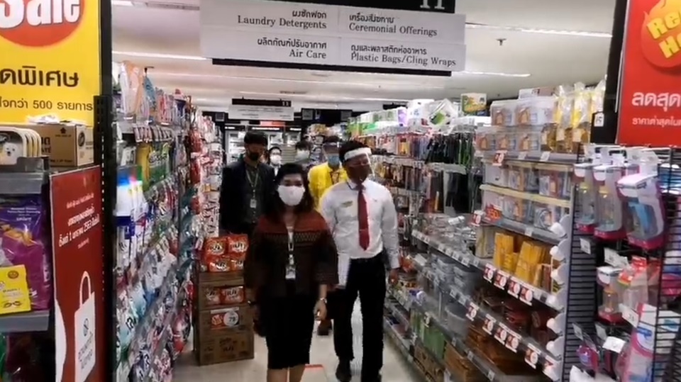 ทั้งนี้ ได้มีการพาชมการจัดการสถานที่ อาทิ จุดคัดกรองบริเวณประตูทางเข้าที่มีการตรวจวัดอุณหภูมิ พื้นที่ส่วนกลางของศูนย์การค้า จุดบริการเจลแอลกอฮอล์ ลิฟต์ที่มีการตีเส้นกำหนดระยะห่าง โซนธนาคาร ท็อปส์ ซูเปอร์มาร์เก็ต ร้านอาหารชั้น 1 และโซนที่จอด และที่พักคอยของบรรดาผู้ขับขี่จักรยานยนต์ ฟู้ด เดลิเวอรี่ จุดบริการรถแท็กซี่ พร้อมพูดคุยตัวแทนผู้ประกอบการ หลังจากตรวจเยี่ยมเรียบร้อยแล้ว ผู้อำนวยการเขตปทุมวันประเมินว่าศูนย์การค้ามีความตั้งใจที่จะปฏิบัติตามมาตรการที่ทางภาครัฐได้วางไว้เป็นที่น่าพอใจ