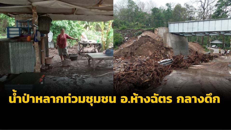 ลำปาง 12 พ.ค.- ลำปางฝนกระหน่ำหนัก น้ำป่าดอยขุนตาลทะลักกลางดึกท่วมชุมชนริมฝั่งอำเภอห้างฉัตร ชาวบ้านสะดุ้งตื่นเก็บของหนีน้ำอลหม่าน ล่าสุดน้ำลดแล้ว แต่ทิ้งคราบดินโคลนและซากกิ่งไม้ไว้เพียบ