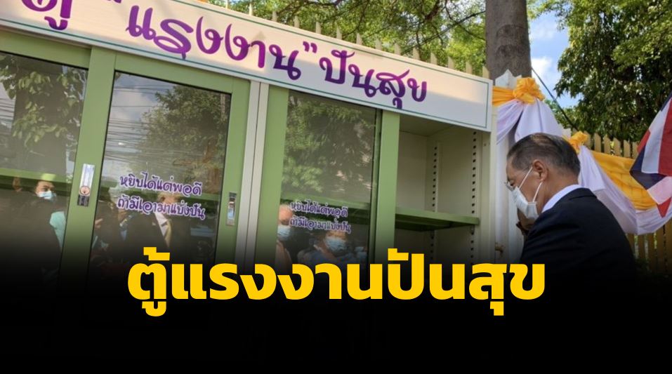รมว.แรงงาน กล่าวว่า กระทรวงแรงงานรับรู้ถึงความเดือดร้อนของพี่น้องประชาชนที่ได้รับผลกระทบจากการแพร่ระบาดของโควิด-19 เป็นอย่างดี และมีความรู้สึกห่วงใยและเห็นใจเป็นอย่างมาก จึงได้สั่งการให้เจ้าหน้าที่จัดทำตู้แรงงานปันสุขขึ้นมาเพื่อร่วมเป็นส่วนหนึ่งในการให้ความช่วยเหลือในการแบ่งปันอาหาร อาหารว่าง เครื่องดื่ม รวมถึงเครื่องอุปโภคบริโภค ของใช้อื่นๆ ที่จำเป็นต่อการดำรงชีวิต โดยได้นำตู้ดังกล่าวมาจัดตั้งไว้บริเวณประตู 1 กระทรวงแรงงาน เพื่อให้ผู้ที่กำลังประสบปัญหาในการดำเนินชีวิตสามารถหยิบไปใช้ได้ และเป็นการลดภาระด้านค่าใช้จ่าย ในขณะเดียวกันผู้ที่ต้องการแบ่งปันก็สามารถนำสิ่งของมาบริจาคตู้นี้ เพื่อร่วมเป็นกำลังใจและช่วยเหลือให้ทุกคนก้าวพ้นวิกฤติโควิด -19 ไปพร้อมกัน