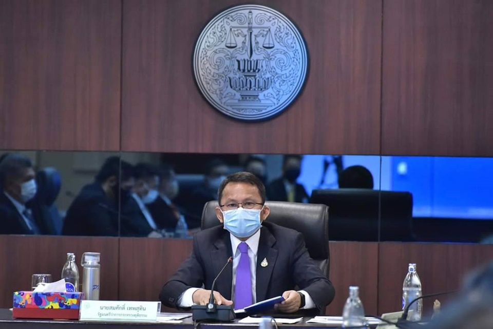 นายสมศักดิ์ เทพสุทิน รัฐมนตรีว่าการกระทรวงยุติธรรม (รมว.ยธ.) พร้อมด้วย ศ.พิเศษวิศิษฏ์ วิศิษฎ์สรอรรถ ปลัดกระทรวงยุติธรรม และผู้บริหารกระทรวงยุติธรรม ประชุมผู้บริหารกระทรวงประจำสัปดาห์