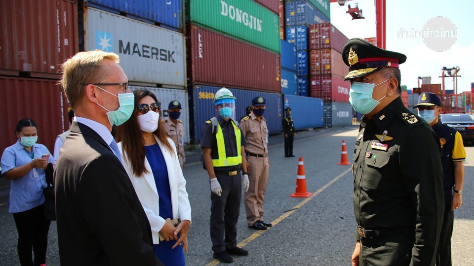 ผู้บัญชาการทหารสูงสุด ได้ตรวจเยี่ยมและให้กำลังใจผู้ปฏิบัติงาน ณ สำนักงานควบคุมการจราจรและความปลอดภัยทางทะเล พร้อมทั้งรับทราบการปฏิบัติในด้านการตรวจคัดกรองของด่านควบคุมโรคสำหรับช่องทางเข้าออกระหว่างประเทศ ท่าเรือแหลมฉบัง จังหวัดชลบุรี และรับชมการสาธิตการปฏิบัติในการตรวจคัดกรองลูกเรือบนเรือสินค้าและท่าเทียบเรือ หลังจากนั้นได้เดินทางไปยังห้างสรรพสินค้า Makro Food Serviceและห้างสรรพสินค้า Harbor Mall เพื่อรับทราบการปฏิบัติงานของชุดตรวจร่วมตามมาตรการผ่อนคลายประจำพื้นที่ ภายหลังจากที่กิจการและกิจกรรมได้รับการผ่อนคลายให้เปิดดำเนินการได้