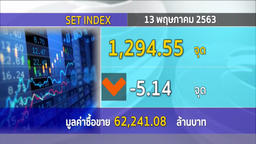 กรุงเทพฯ  13 พ.ค. – หุ้นไทยลบ 5.14 จุด ดัชนีปิดที่ 1,294.55 จุด กังวลโควิด-19 ระบาดรอบ 2  กระทบเศรษฐกิจ