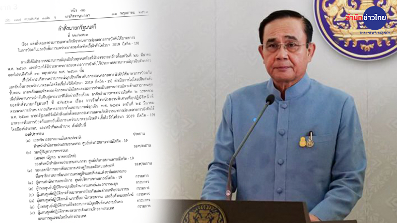 กทม. 13 พ.ค.- คำสั่งนายกรัฐมนตรี ที่ 22/2563 เรื่อง แต่งตั้งคณะกรรมการเฉพาะกิจพิจารณาการผ่อนคลายการบังคับใช้มาตรการในการป้องกันและยับยั้งการแพร่กระจายระบาดของโรคติดเชื้อไวรัสโคโรนา 2019 (โควิด – 19).-สำนักข่าวไทย
