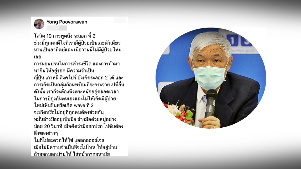 ศ.นพ.ยง ภู่วรวรรณ หัวหน้าศูนย์เชี่ยวชาญเฉพาะทาง ด้านไวรัสวิทยาคลินิก คณะแพทยศาสตร์ จุฬาลงกรณ์มหาวิทยาลัย โพสต์เฟซบุ๊ก ว่า โควิด-19 การพูดถึงระลอกที่ 2 ช่วงนี้ทุกคนดีใจที่เรามีผู้ป่วยเป็นเลขตัวเดียวนานเป็นอาทิตย์และเมื่อวานนี้ไม่มีผู้ป่วยใหม่เลย