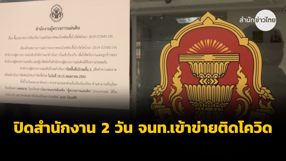 กรุงเทพฯ 14 พ.ค.- ผู้ตรวจการแผ่นดินสั่งปิดสำนักงาน 2 วัน อบโอโซน ฆ่าเชื้อ หลังพบเจ้าหน้าที่เข้าข่ายติดเชื้อโควิด-19