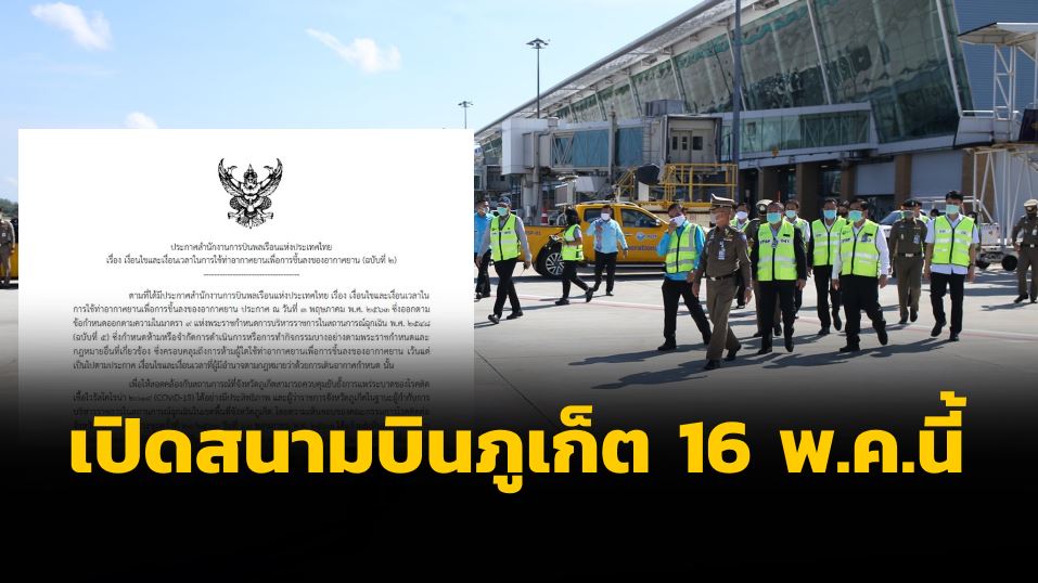 ทั้งนี้ เพื่อให้สอดคล้องกับสถานการณ์ที่จังหวัดภูเก็ตสามารถควบคุมยับยั้งการแพร่ระบาดของโควิด-19 ได้อย่างมีประสิทธิภาพ คณะกรรมการโรคติดต่อจังหวัดภูเก็ตได้แจ้งมติเห็นควรให้เปิดการดำเนินงานของสนามบินภูเก็ต ตั้งแต่วันที่ 16 พฤษภาคม 2563 เวลา 00.01 เป็นต้นไป เพื่ออำนวยความสะดวกแก่ประชาชน