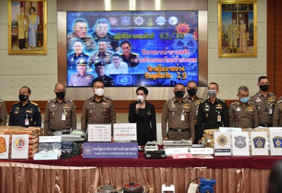 วันนี้ (15 พ.ค.) เภสัชกรหญิงสุภัทรา บุญเสริม รองเลขาธิการคณะกรรมการอาหารและยา (รองเลขาธิการ อย.) ร่วมกับ พล.ต.ท.วิสนุ ปราสาททองโอสถ ผู้ช่วยผู้บัญชาการตำรวจแห่งชาติ และ กองบังคับการตำรวจปราบปรามยาเสพติด (บช.ปส.) นำโดย พล.ต.ท.ชินภัทร สารสิน ผู้บัญชาการปราบปรามยาเสพติด แถลงข่าวต่อสื่อมวลชนเปิดผลงานปฏิบัติการสยบไพรี 63/10 ตรวจค้น 50 จุดทั่วประเทศ กวาดล้างขบวนการลักลอบขาย โฆษณายาเสพติดให้โทษ วัตถุออกฤทธิ์ต่อจิตและประสาท ยาแผนปัจจุบัน ผลิตภัณฑ์เสริมอาหาร ทางสื่อออนไลน์ ทั้งไลน์ อินสตาแกรม เฟสบุ๊ค ขานรับนโยบาย พล.อ.ประยุทธ์ จันทร์โอชา นายกรัฐมนตรี ในการปราบปรามยาเสพติดและผลิตภัณฑ์สุขภาพที่เป็นอันตรายต่อสุขภาพของประชาชน