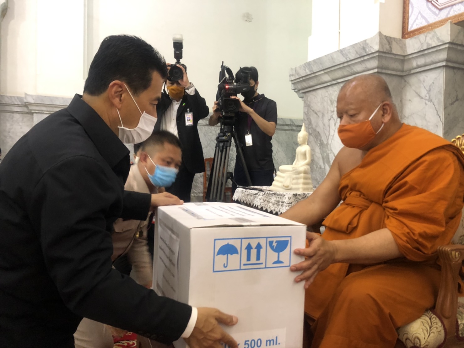 โอกาสนี้ รัฐมนตรีประจำสำนักนายกรัฐมนตรีได้นำหน้ากากอนามัย จำนวน 12,000 ชิ้น เป็นเงินมูลค่า 120,000 บาท ตามพระบัญชาของสมเด็จพระสังฆราช พร้อมเจลและแอกอฮอร์ล้างมือ จำนวน 1,000 ขวด มาถวายแด่พระราชปริยัติสุนทร เจ้าคณะจังหวัดฉะเชิงเทรา พร้อมกันนี้ รัฐมนตรีประจำสำนักนายกรัฐมนตรีได้ติดตาม การดำเนินงานของโรงทานวัดผาณิตาราม และร่วมมอบถุงยังชีพแก่ประชาน จำนวน 100 ครัวเรือน