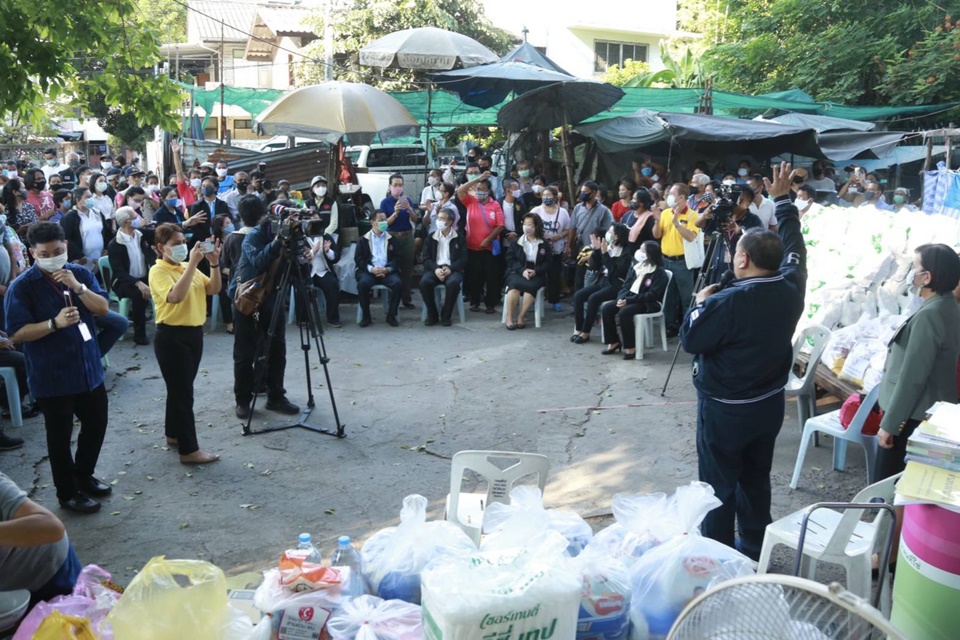 พ่อค้าขายข้าวขาหมูคนหนึ่ง เล่าว่า ขายข้าวน้อยลงเหลือประมาณ 1ใน 4 ของรายได้ปกติ บางวันขายได้เงิน รวมไม่ถึง 1,000 บาท ทางกระทรวงฯ จึงได้จัดสิ่งของอุปโภค บริโภค และนมผงสำหรับเด็ก ผ้าอ้อมสำหรับเด็กและผู้ใหญ่ ขนมและแฮมเบอร์เกอร์ รวมถึงนมเม็ดจากสวนจิตรลดา ไปมอบให้ เด็กๆและผู้ใหญ่ได้รับประทาน