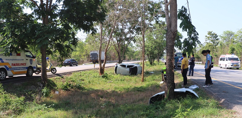 ลำปาง 16 พ.ค.- นาทีระทึก! เก๋งขาวมุ่งหน้าจังหวัดตาก เกิดล้อหลุดกลางถนนสายเกาะคา-ลำปาง พลิกตลบชนต้นไม้อย่างแรง เคราะห์ดีชายคนขับไม่สาหัส