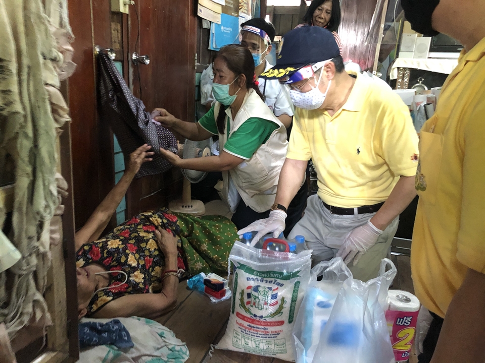 พร้อมนำทีมลงพื้นที่ชุมชนเขตตลิ่งชันช่วยผู้พิการและผู้ป่วยติดเตียงที่ได้รับผลกระทบจากโควิด-19 ด้าน”ครูหยุย”ลงพื้นที่แจกของสามล้อท่าน้ำนนท์-ปทุม ที่เพิ่งมีผู้โดยสาร แต่ลดลงถึงร้อยละ 70