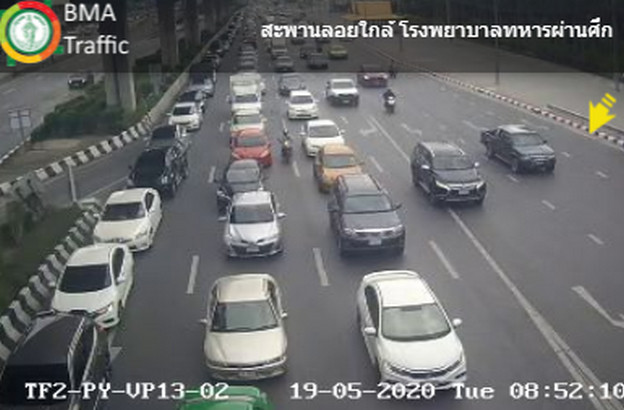 ถนนรัชดาภิเษก ขาเข้า จากแยกรัชดา-ลาดพร้าว มุ่งหน้าแยกสุทธิสาร – แยกห้วยขวาง รถมาก ท้ายแถวสะสมสะพานข้ามคลองบางซื่อ