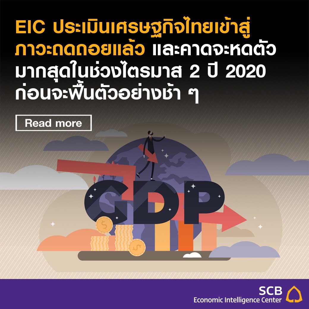 Economic Intelligence Center (EIC) ธนาคารไทยพาณิชย์ (SCB) ประเมินสถานการณ์ทางเศรษฐกิจของไทยเข้าสู่ภาวะถดถอย โดยคาดว่าในช่วงไตรมาส 1 ปี 2563 จะหดตัวที่1.8% ซึ่งเป็นการหดตัวครั้งแรกตั้งแต่ไตรมาส 1/2557 และหดตัวมากที่สุดตั้งแต่ไตรมาส 4/2554 โดยเศรษฐกิจไทยในไตรมาส 1 ที่ผ่านมาได้เข้าสู่ภาวะเศรษฐกิจถดถอยทางเทคนิคแล้ว หลังจากจีดีพีหดตัวติดต่อกัน 2 ไตรมาส