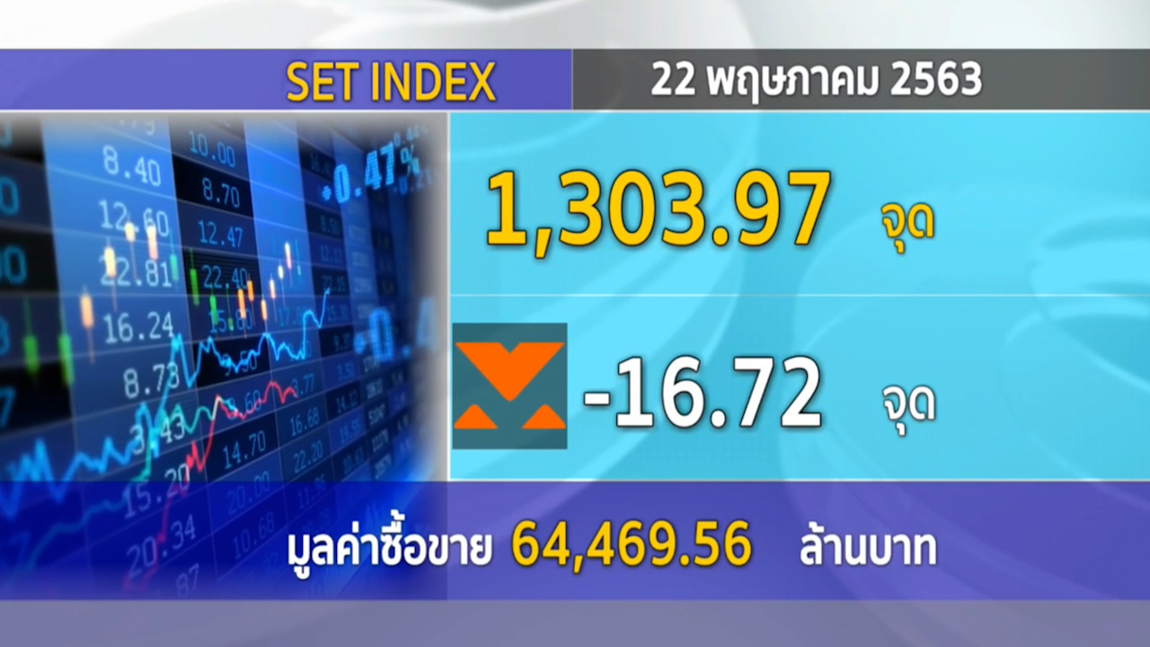 กรุงเทพฯ 22 พ.ค.- ตลาดหลักทรัพย์ปิดวันนี้ที่ระดับ 1,303.97 จุด ลดลง 16.72 จุด (-1.27%) มูลค่าการซื้อขาย 64,469.56 ล้านบาท วิตกกังวลความขัดแย้งระหว่างสหรัฐกับจีน.-สำนักข่าวไทย