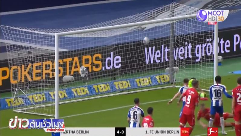 ฟุตบอลบุนเดสลีกา เยอรมนี นัดที่ 27 ในศึกเบอร์ลิน ดาร์บี้แมตช์ แฮร์ธา เบอร์ลิน เสื้อน้ำเงินสลับขาว พบ อูนิโอน เบอร์ลิน นัดนี้ทั้งสองทีมยังลงเตะในสนามแบบไม่มีผู้ชม ครึ่งแรกเสมอกัน 0-0 ครึ่งหลังนาทีที่ 51 เจ้าถิ่นมาได้ประตูขึ้นนำ 1-0 จากลูกโหม่งของ เวดัด อิบิเซวิช จากนั้นถัดมานาทีเดียว เวดัด อิบิเซวิช จ่ายทะลุช่องให้ โดดี้ ลูเกบาคิโอ หลุดเข้าไปยิงให้เจ้าถิ่นนำห่าง 2-0 นาทีที่ 61 เวดัด อิบิเซวิช พักบอลในเขตโทษ ก่อนแตะให้ มาเธอุส คุนญา ซัดเข้าไป เจ้าถิ่นนำ 3-0 จากนั้นนาทีที่ 77 เดดริก โบยาตา มาโหม่งประตูปิดท้าย ช่วยให้แฮร์ธา เบอร์ลิน เปิดบ้านเอาชนะไปได้ 4-0 มี 34 คะแนน รั้งอันดับ 10 ส่วนอูนิโอน มี 30 คะแนน รั้งอันดับ 12.-สำนักข่าวไทย