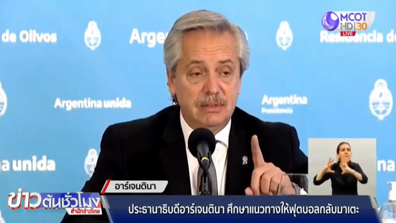 อาร์เจนตินา 25 พ.ค. – ประธานาธิบดีอาร์เจนตินา เผยกำลังศึกษาความเป็นไปได้และแนวทางปฏิบัติในการอนุญาตให้ฟุตบอลกลับมาแข่งขันอีกครั้ง