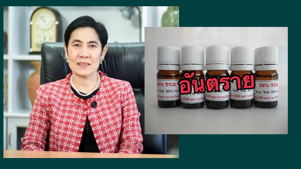 จึงขอเตือนไปยังวัยรุ่นที่รักความงามต้องการมีผิวขาวใสเรียบเนียน อย่าหลงเชื่อซื้อผลิตภัณฑ์ดังกล่าวมาใช้โดยเด็ดขาด เพราะกรดทีซีเอเป็นยาที่ใช้ในการรักษาผู้ป่วยโรคผิวหนัง และต้องใช้ภายใต้การดูแลของแพทย์ผู้เชี่ยวชาญเท่านั้น เนื่องจากกรดทีซีเอมีความเข้มข้นหลายแบบเหมาะสำหรับการรักษาทางผิวหนังที่แตกต่างกัน หากใช้ผิดวิธี กรดดังกล่าวอาจไปทำลายผิวหนังถึงชั้นหนังแท้ เกิดรอยแผลเป็นบนใบหน้าถาวรไม่สามารถรักษาให้หายได้ กรณีนี้ อย. ได้สั่งระงับการโฆษณาขายยาและดำเนินการทางกฎหมายกับเจ้าของเฟซบุ๊กและเว็บไซต์ดังกล่าวแล้ว