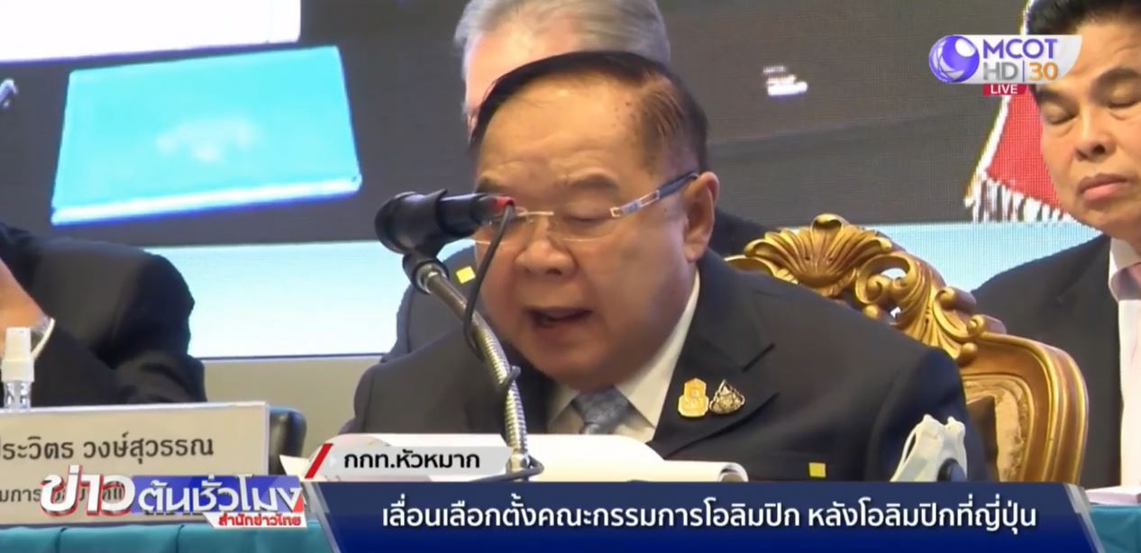 พล.อ.ประวิตร วงษ์สุวรรณ เป็นประธานประชุมสมัชชาใหญ่สามัญประจำปี ของคณะกรรมการโอลิมปิกแห่งประเทศไทย วาระสำคัญคือการพิจารณาแก้ไขข้อบังคับการเลือกตั้งคณะกรรมการโอลิมปิกชุดใหม่ ที่ผ่านการเลือกตั้งจะต้องมีขึ้นหลังการแข่งขันโอลิมปิกเกมส์ คือภายในเดือน มี.ค.2564 แต่เนื่องจากการแข่งขันโอลิมปิกเกมส์ที่โตเกียวในปีนี้ต้องเลื่อนการแข่งขันออกไปในปี พ.ศ.2564 ทำให้คณะกรรมการโอลิมปิกสากลได้สอบถามแผนของโอลิมปิกไทยว่าจะดำเนินการอย่างไร ที่ประชุมวันนี้ได้มีมติโหวตเป็นเอกฉันท์ให้เลื่อนการเลือกตั้งออกไปเป็นหลังจบโอลิมปิกเกมส์ที่ญี่ปุ่นภายใน 90 วัน