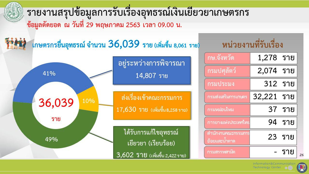 นายเฉลิมชัย กล่าวต่อว่า กระทรวงเกษตรฯ และหน่วยงานที่เกี่ยวข้องเร่งตรวจสอบความซ้ำซ้อนอย่งรอบคอบให้เป็นไปตามมติครม. ผู้ที่ขึ้นและปรับปรุงทะเบียนซึ่งมีคุณสมบัติครบถ้วนจะได้รับเงินเยียวยาเดือนละ 5,000 บาท เป็นเวลา 3 เดือน รวม 15,000 บาทต่อรายแน่นอน นอกจากนี้กำลังร่วมกับธนาคารเพื่อการเกษตรและสหกรณ์การเกษตร (ธ.ก.ส.) ติดต่อเกษตรกรที่แจ้งข้อมูลบางอย่างหรือหมายเลขบัญชีธนาคารไม่ถูกต้อง โดยให้เร่งมาแก้ไขข้อมูลเพื่อจะได้รับเงินเยียวยา ส่วนเกษตรกรที่ใช้บัญชีของธนาคารอื่นที่ไม่ใช่บัญชี ธ.ก.ส. อาจได้รับโอนล่าช้ากว่าแผนไปเล็กน้อยเนื่องจากกระบวนการโอนต้องทำซ้ำ 2 ครั้ง แต่จะดำเนินการให้เร็วที่สุด รวมทั้งยืนยันว่า การดำเนินโครงการจ่ายเงินเยียวยาเกษตรกรเป็นไปอย่างโปร่งใสและตรวจสอบได้ ช่วยเหลือทุกคนที่มีสิทธิ์ จะไม่ทิ้งใครไว้ข้างหลัง . – สำนักข่าวไทย