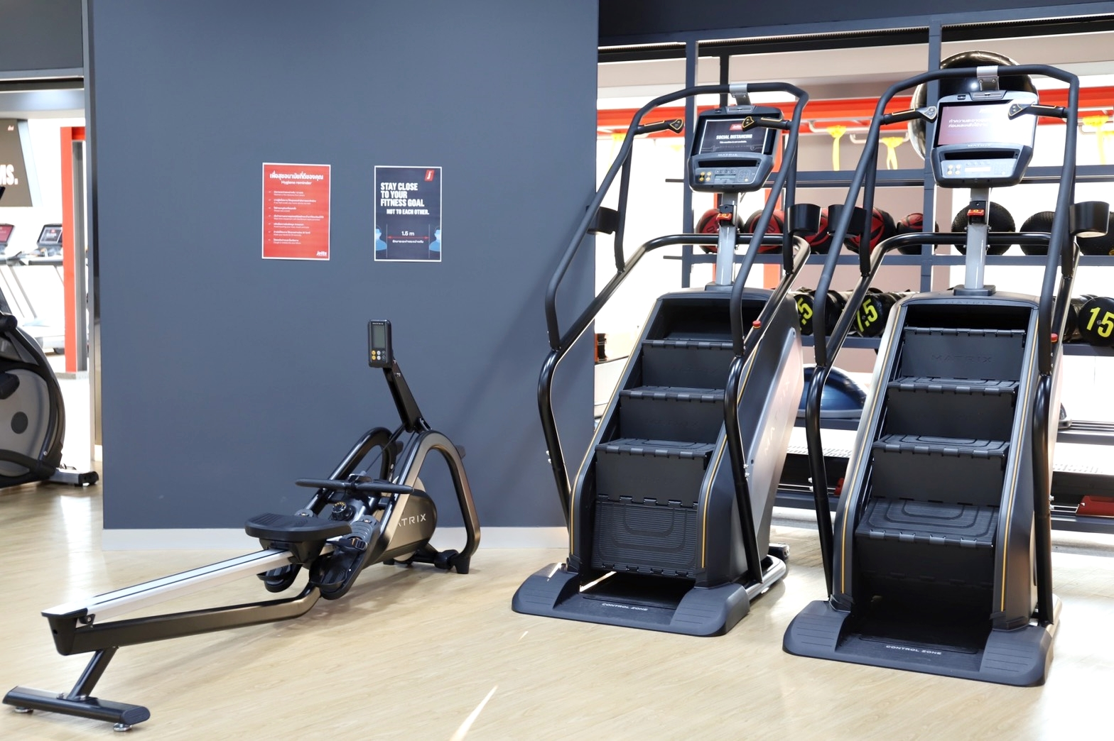 การจัดวางอุปกรณ์ออกกำลังกายต่าง ๆ ให้มีระยะห่างที่เหมาะสม การจำกัดจำนวนสมาชิกในคลาสออกกำลังกาย