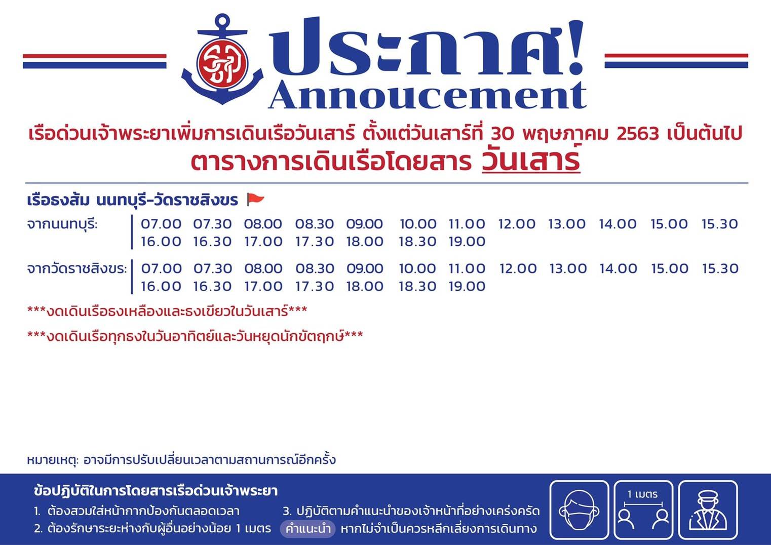 และงดให้บริการเรือทุกธงในวันอาทิตย์และวันหยุดนักขัตฤกษ์.