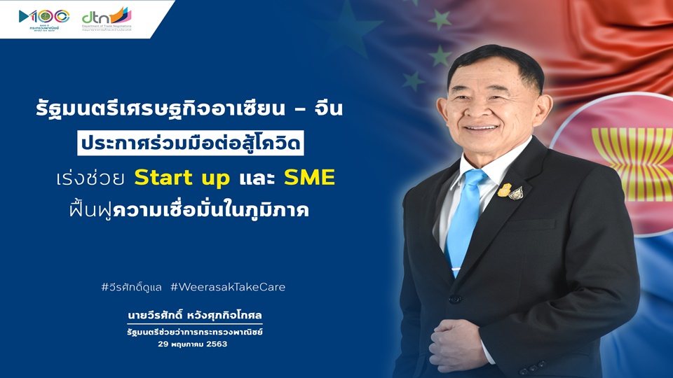 นายวีรศักดิ์ หวังศุภกิจโกศล รัฐมนตรีช่วยว่าการกระทรวงพาณิชย์ เปิดเผยว่า เมื่อวันที่ 29 พฤษภาคมที่ผ่านมา รัฐมนตรีเศรษฐกิจอาเซียนและจีนได้ร่วมกันออกถ้อยแถลงว่าด้วยการต่อสู้กับการแพร่ระบาดของโควิด-19 และการกระชับความร่วมมือภายใต้ความตกลงการค้าเสรีอาเซียน–จีน โดยถ้อยแถลงดังกล่าว เน้น 3 ประเด็นหลัก ได้แก่ 1. การกระชับความสัมพันธ์ทางเศรษฐกิจและขยายการค้าและการลงทุนระหว่างอาเซียนกับจีน ผ่านความตกลงการค้าเสรีอาเซียน–จีน 2.การบรรเทาผลกระทบทางเศรษฐกิจที่เกิดจากโควิด-19 และ 3. การใช้มาตรการเพื่อฟื้นฟูความเชื่อมั่นและเสถียรภาพของเศรษฐกิจในภูมิภาค