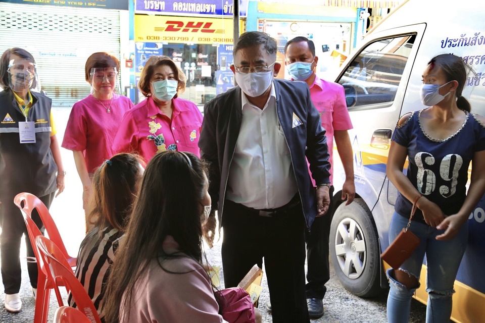 สำหรับสถานการณ์การจ่ายเงินว่างงานอันเนื่องมาจากเหตุสุดวิสัยโควิด-19 ของประกันสังคมจังหวัดชลบุรีและสาขาศรีราชานั้น ได้ส่งทีมเฉพาะกิจพิเศษจากส่วนกลางลงพื้นที่ร่วมให้บริการ และได้สั่งการจังหวัดเล็กช่วยจังหวัดใหญ่ร่วมมือกันบันทึกข้อมูลวินิจฉัยสิทธิ ได้รับรายงานจากเรืออากาศเอกหญิง ศุภพร อยู่วัฒนา ประกันสังคมจังหวัดชลบุรี ว่าปริมาณงานที่เข้ามาในจังหวัดทั้งสิ้น ประมาณ 92,216 ราย ได้เร่งวินิจฉัยจ่ายสิทธิประโยชน์ไปแล้ว คงค้างเพียง 8,402 ราย