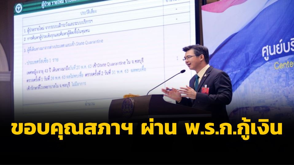 โฆษกศบค. กล่าวว่า ขอบคุณสภาผู้แทนราษฎรที่ลงมติเห็นชอบพ.ร.ก.กู้เงินทั้ง 3 ฉบับเพื่อนำมาแก้ไขฟื้นฟูเศรษฐกิจ และช่วยเหลือทางด้านวิสาหกิจที่ได้รับผลกระทบจากการแพร่ระบาดของโควิด-19 รวมถึงการรักษาเสถียรภาพระบบทางการเงิน และเงินก้อนนี้เป็นเม็ดเงินก้อนสุดท้าย ไม่มีอนใหม่อีกแล้ว ขอให้ทุกคนผ่านวิกฤติไปให้ได้ ไม่ประมาท การ์ดอย่าตก