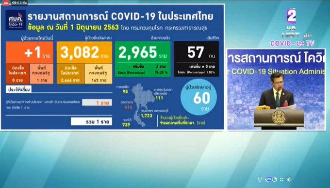 BANGKOK, June 1 (TNA) – Thailand reported one new coronavirus virus case on Monday as the country started the third round of lockdown easing to allow resumption of theatres and spas and shorten curfew hours.