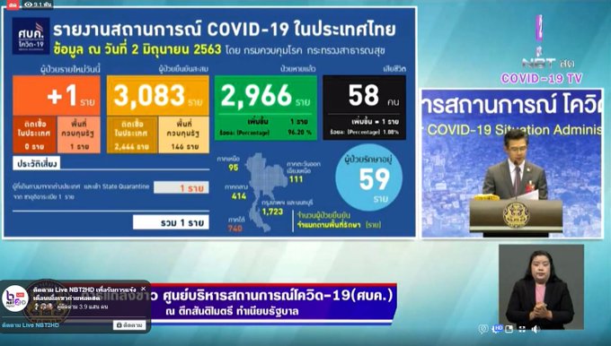 Taweesin Wisanuyothin, a spokesman for the Centre for Covid-19 Situation Administration (CCSA) said the new numbers brought the total cases in the country to 3,083 and the death toll to 58.