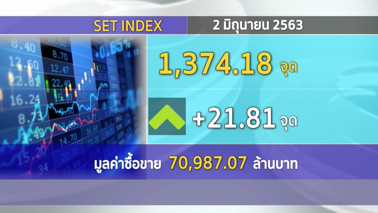 กทม. 2 มิ.ย.- ดัชนีตลาดหลักทรัพย์ฯ ปิดวันนี้ (2 มิ.ย.) ที่ระดับ 1,374.18 จุด เพิ่มขึ้น 21.81 จุด หรือ 1.61% มูลค่าการซื้อขาย 70,987.07 ล้านบาท โดยดัชนีเคลื่อนไหวแดนบวกตลอดทั้งวัน ทำระดับสูงสุด 1,374.29 จุด และทำระดับต่ำสุด 1,357.23 จุด.-สำนักข่าวไทย