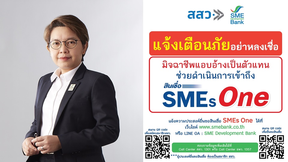 กรุงเทพฯ 4 มิ.ย. – ธพว.- สสว.เตือนผู้ประกอบการอย่าหลงเชื่อมิจฉาชีพ แอบอ้างเป็นตัวแทนช่วยดำเนินการเข้าถึงสินเชื่อ SMEs One