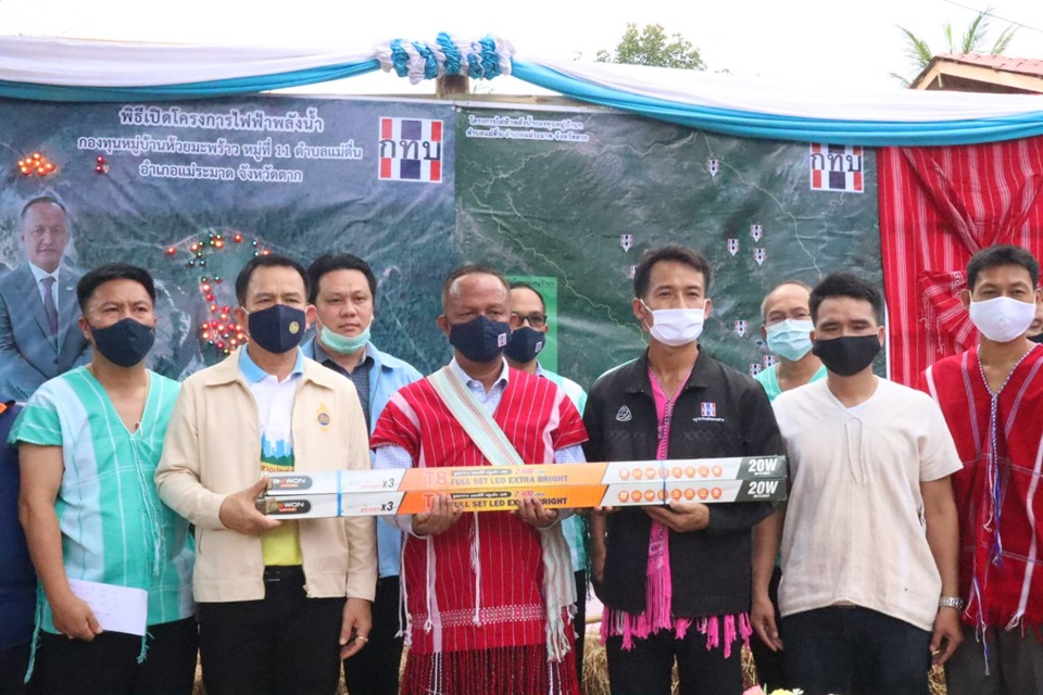 นายรักษ์พงษ์ เซ่งเจริญ ผู้อำนวยการ สำนักงานกองทุนหมู่บ้านและชุมชนเมืองแห่งชาติ (สทบ.) เป็นประธานในพิธีเปิดโครงการไฟฟ้าพลังน้ำตามโครงการอนุรักษ์ต้นน้ำเพื่อผลิตไฟฟ้าพลังน้ำ ภายใต้โครงการเสริมสร้างความเข้มแข็งของเศรษฐกิจฐานรากเพื่อการพัฒนาอย่างยั่งยืนปี 2563 ด้วยการส่งเสริมกองทุนหมู่บ้านห้วยมะพร้าว อ.แม่ระมาด จ.ตาก ให้มีกระแสไฟฟ้าใช้อย่างทั่วถึงจัดสรรงบประมาณ 200,000 บาท พัฒนาท้องถิ่น นำมาจัดซื้อเครื่องผลิตกระแสไฟฟ้าและอุปกรณ์ติดตั้งกระจายไฟฟ้าให้กับกลุ่มหมู่บ้านของกองทุนหมู่บ้านห้วยมะพร้าว
