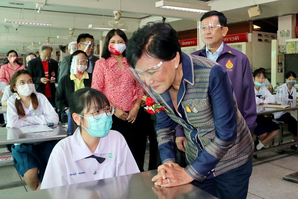 คุณหญิงกัลยา โสภณพนิช รัฐมนตรีช่วยว่าการกระทรวงศึกษาธิการ (รมช.ศธ.) พร้อมด้วยนายอำนาจ วิชยานุวัติ เลขาธิการคณะกรรมการการศึกษาขั้นพื้นฐาน (เลขาธิการ กพฐ.) และผู้บริหารสำนักงานคณะกรรมการการศึกษาขั้นพื้นฐาน (สพฐ.) ลงพื้นที่ติดตามการสอบคัดเลือกนักเรียนระดับชั้นมัธยมศึกษาปีที่ 4 ภายใต้สถานการณ์การแพร่ระบาดของโรคติดเชื้อไวรัสโคโรนา 2019 (COVID-19) พร้อมทั้งเยี่ยมชมศูนย์คณิตศาสตร์ ณ โรงเรียนสตรีวิทยา โดยมีนายพิพนธ์ ก้องเวหา ผู้อำนวยการสำนักงานเขตพื้นที่การศึกษามัธยมศึกษา เขต 1 นางวรรณดี นาคสุขปาน ผู้อำนวยการโรงเรียนสตรีวิทยา และคณะครู ให้การต้อนรับ