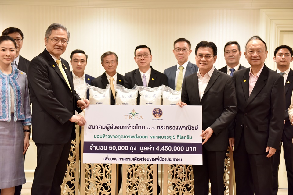 นอกจากนี้ กระทรวงพาณิชย์ได้แสดงความยินดีที่สมาคมผู้ส่งออกข้าวไทยนำข้าวสารดังกล่าว ซึ่งเป็นสินค้าบริโภคที่จำเป็นต่อการดำรงชีพของประชาชนมามอบให้กระทรวงพาณิชย์ เพื่อนำไปแจกจ่ายให้กับประชาชนที่ได้รับผลกระทบจากการแพร่ระบาดของโควิด-19 ในพื้นที่ต่าง ๆ เพื่อจะได้ช่วยลดค่าครองชีพให้แก่พี่น้องประชาชน เพื่อให้ทุกคนผ่านพ้นสถานการณ์วิกฤตินี้ร่วมกันไปได้ด้วยดี