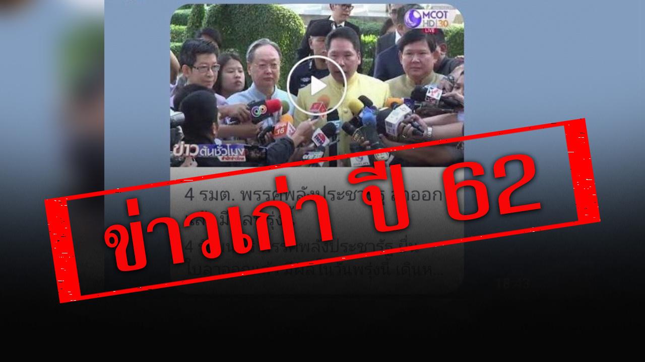 อสมท 8 มิ.ย.-สำนักข่าวไทย ชี้แจงภาพข่าวที่ส่งต่อกันในโลกออนไลน์ “4 รมต.พรรคพลังประชารัฐ ลาออกแล้ว มีผลพรุ่งนี้” เป็นข่าวเก่าปี 2562