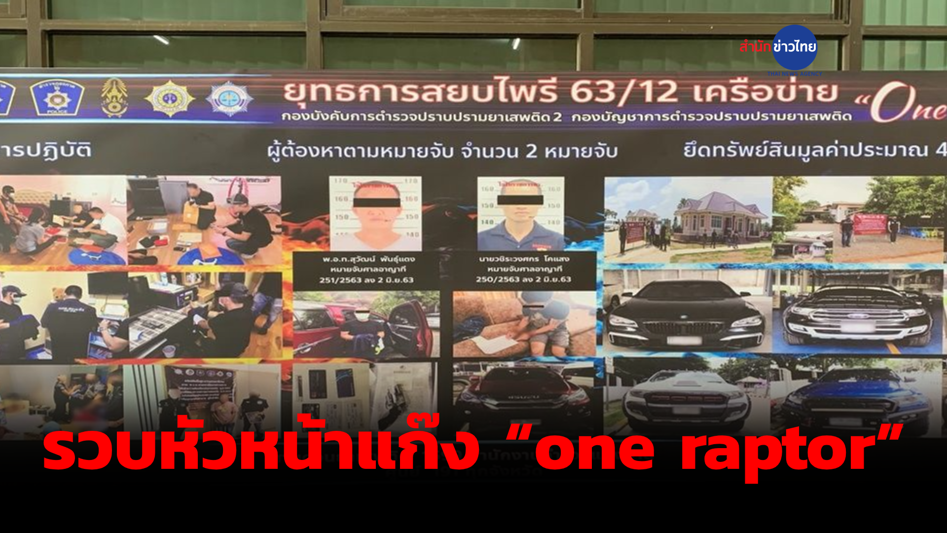 กรุงเทพฯ 9 มิ.ย.- ปส.จับกุม พันจ่าอากาศโทสุวัฒน์ พันธุ์แตง หัวหน้าแก็ง“one raptor” เครือข่ายค้ายาเสพติดรายใหญ่ภาคตะวันออก ยึดไอซ์และทรัพย์สินจำนวนมาก มูลค่ารวมกว่า 42 ล้านบาท