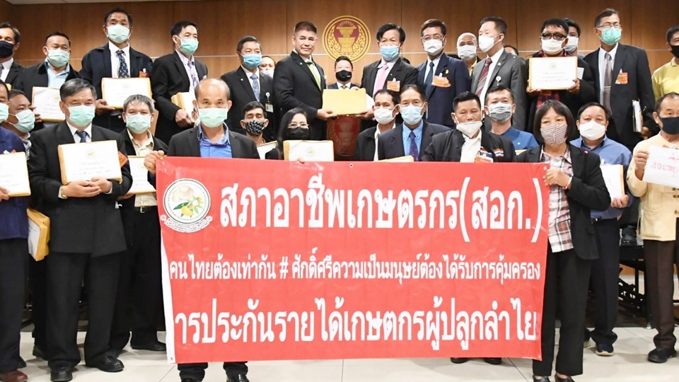 ผู้สื่อข่าวรายงานว่า ตัวแทนสภาอาชีพเกษตรกร นำรายชื่อเกษตรกรทั่วประเทศ 20,000 คน ยื่นถึง ร.อ.ธรรมนัส พรหมเผ่า รัฐมนตรีช่วยว่าการกระทรวงเกษตรและสหกรณ์ รวมถึง นายสมพงษ์ อมรวิวัฒน์ ผู้นำฝ่ายค้านในสภาผู้แทนราษฎร และ ส.ส.กลุ่มจังหวัดภาคเหนือ 8 จังหวัดเพื่อขอให้รัฐบาลชดเชยการประกันรายได้ให้แก่เกษตรกรผู้ปลูกลำไยใน 33 จังหวัดทั่วประเทศ เพื่อให้มีรายได้เพียงพอต่อการดำรงชีวิตเช่นเดียวกับเกษตรกรที่ปลูกพืชอย่างอื่น รวมถึงให้รัฐบาลประกันรายได้ให้แก่เกษตรกรที่ปลูกลำไยกิโลกรัมละ 40 บาทโดยต้องจ่ายเงินชดเชยการประกันรายได้ให้แก่ผู้ปลูกลำไยชนิดเกรด AA กิโลกรัมละ 32 บาท เพื่อให้เกิดความเสมอภาคทั่วถึงและเป็นธรรม
