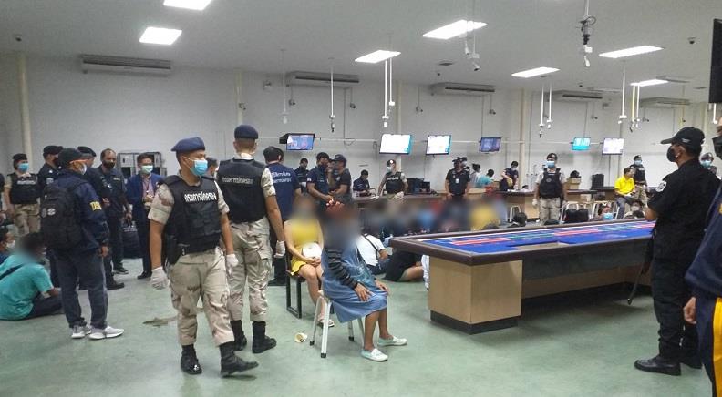 ระยอง 10 มิ.ย.- ดีเอสไอ-กรมการปกครอง-ทหารเรือ ปฏิบัติการทลายบ่อนใหญ่ที่มาบตาพุด เมืองระยอง ฝ่าฝืน พรก.ฉุกเฉิน เปิดตลอด 24 ชม. และทำทางเข้าอำพรางตา มีทั้งประตูลับ ติดวงจรปิดทุกจุด คุมตัวนักพนันได้กว่าร้อยคนดำเนินคดี ยึดของกลางอีกเพียบ พร้อมรายชื่อลูกค้าวีไอพี