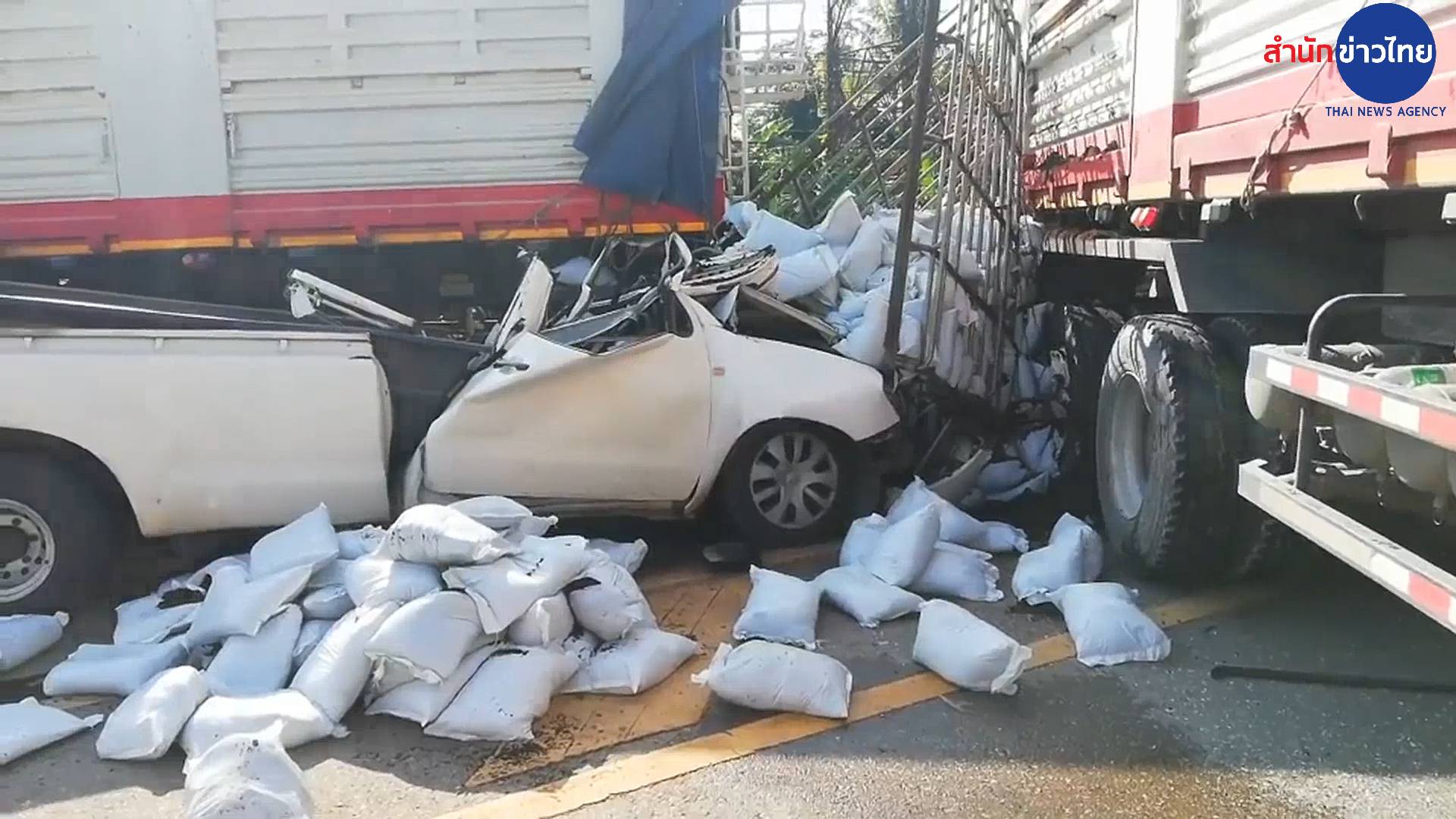 กระบี่ 11 มิ.ย. –ที่ จ.กระบี่ รถพ่วง 18 ล้อ เลี้ยวยูเทิร์นกะทันหัน รถกระบะเบรกไม่อยู่ พุ่งชนยับทั้งคัน คนขับรถกระบะ พร้อมภรรยา และลูกสาววัย 2 ขวบ รอดปาฏิหาริย์