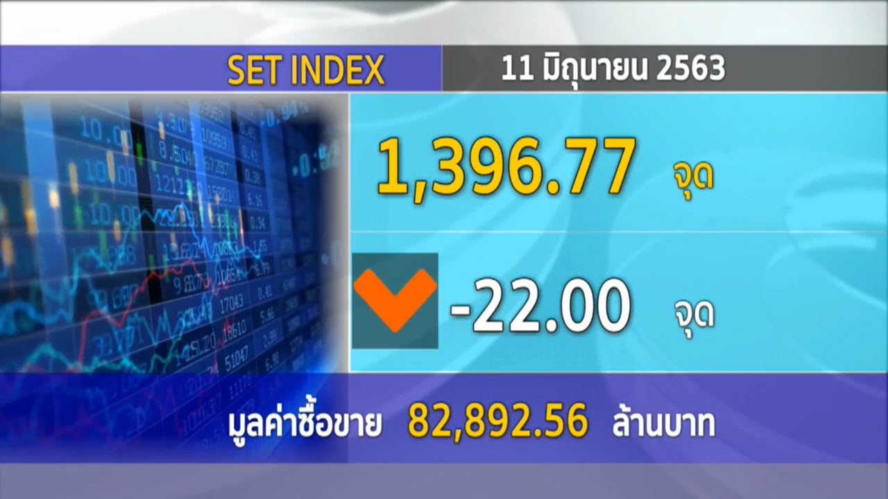 กรุงเทพฯ 11 มิ.ย. – ตลาดหุ้นไทยปิดร่วง 22 จุด ตามต่างประเทศ หวั่นเศรษฐกิจฟื้นช้า ขายทำกำไรหลังแพงสุดในเอเชีย