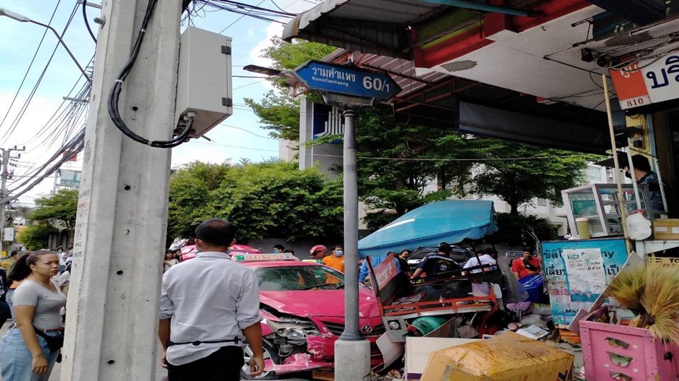 ผู้สื่อข่าวรายงานว่า เมื่อเวลาประมาณ 12.30 น. ตำรวจ สน.หัวหมาก รับแจ้งเกิดอุบัติเหตุ รถแท็กซี่ สีชมพู ทะเบียน ทษ-3188 กทม. เสียหลักพุ่งขึ้นทางเท้าชนกลุ่มวินจักรยานยนต์รับจ้าง ร้านค้าริมฟุตบาธ บริเวณปากซอยรามคำแหง 60/1 ถนนรามคำแหงขาเข้า โดยที่เกิดเหตุ พบ รถแท็กซี่ โตโยต้า สีชมพู ทะเบียน ทษ 3188 กทม. พุ่งชนวินรถจักรยานยนต์ ส่งผลให้มีรถจักรยานยนต์ ที่จอดในจุดดังกล่าว รวมถึง รถซาเล้งขายกาแฟที่จอดอยู่ใกล้เคียง เสียหาย 4 คัน นอกจากนี้ยังมีวิน จักรยานยนต์ คนเดินเท้า ได้รับบาดเจ็บ ประมาณ 7 คน นำส่งโรงพยาบาลใกล้เคียง