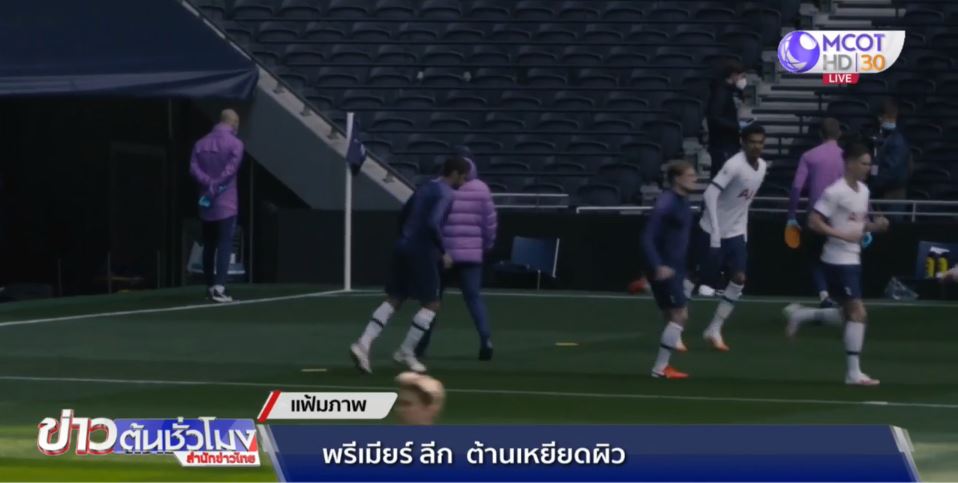ก่อนหน้านี้ พรีเมียร์ ลีก อนุญาตให้ทุกทีมสามารถติดโลโก้ขอบคุณหน่วยงานบริการสาธารณสุขของอังกฤษ หรือ NHS ที่ทำงานอย่างหนักเพื่อต่อสู้กับโควิด-19.-สำนักข่าวไทย