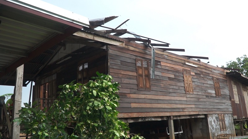 นายสำรวย โสธรรมมงคล บ้านเลขที่ 67 ม.6 บ้านโพนสว่าง ต.ชัยพฤกษ์ เล่าว่า ลมพัดหลังคาบ้านเปิดทั้งหลัง ข้าวของเครื่องใช้เปียกชื้นทั้งหมด และน้ำไหลซึมลงไปชั้นล่าง ส่วนแม่อายุ 75 ปีปลอดภัย.-สำนักข่าวไทย