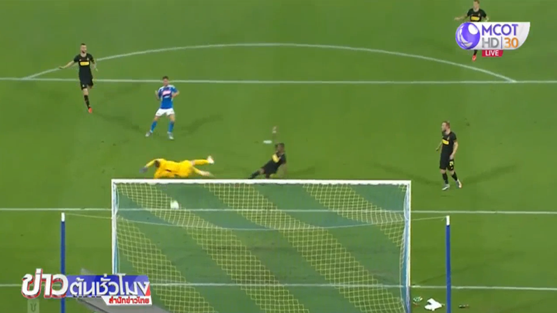 ฟุตบอลโคปปา อิตาเลีย รอบรองชนะเลิศ นัดที่ 2 นาโปลี พบกับ อินเตอร์ มิลาน นัดแรก นาโปลี เอาชนะมาก่อน 1-0 เริ่มเกมได้ 2 นาที “งูใหญ่” บุกมานำ 1-0 จากจังหวะเตะมุม คริสเตียน เอริคเซน เปิดโค้งเข้าเขตประตูให้ โจวานนี ดิ ลอเรนโซ โหม่งไม่โดนบอล แต่โชคดีบอลพุ่งตรงกรอบเข้าประตู