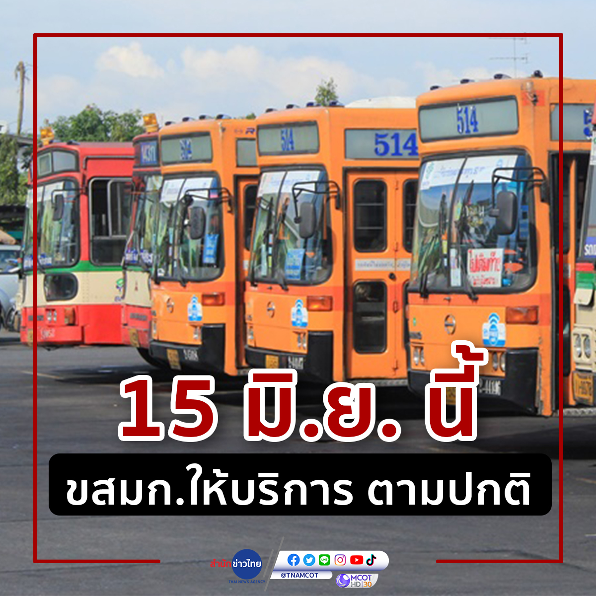 องค์การขนส่งมวลชนกรุงเทพ (ขสมก.) จะให้บริการรถโดยสารประจำทางทุกเส้นทาง ตามเวลาปกติ ตั้งแต่วันที่ 15 มิถุนายน 2563 เป็นต้นไป ภายหลังที่ประชุมศูนย์บริหารสถานการณ์การแพร่ระบาดของโรคติดเชื้อไวรัสโคโรนา 2019 (ศบค.) มีมติยกเลิกมาตรการ ห้ามออกนอกเคหสถานทั่วราชอาณาจักร ระหว่างเวลา 23.00 – 03.00 น. และเห็นชอบคลายการผ่อนคลายมาตรการสกัดกั้นการแพร่ระบาดของเชื้อโควิด – 19 ระยะที่ 4