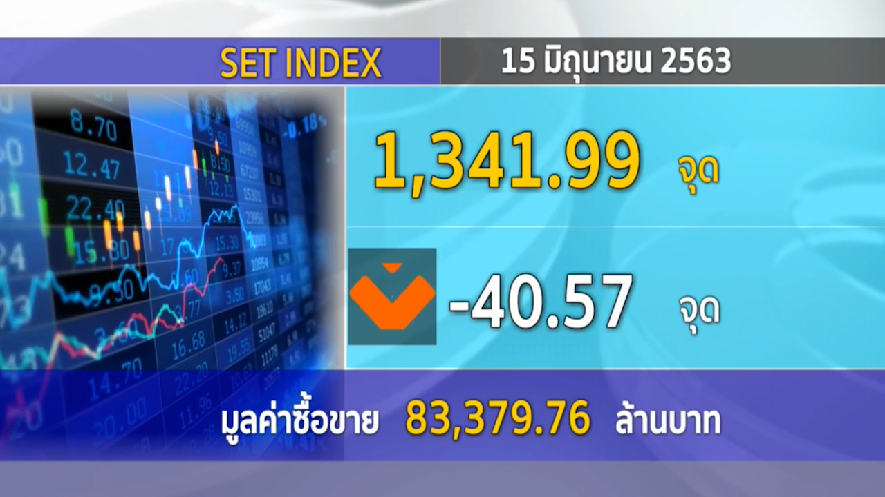 ตลาดหลักทรัพย์แห่งประเทศไทย 15 มิ.ย. – ตลาดหลักทรัพย์ ปิดวันนี้ที่ระดับ 1,341.99 จุด ลดลง 40.57 จุด (-2.93%) มูลค่าการซื้อขาย 83,379.76 ล้านบาท ตามตลาดหุ้นทั่วโลก กังวลโควิด-19 ระบาดรอบสอง.-สำนักข่าวไทย