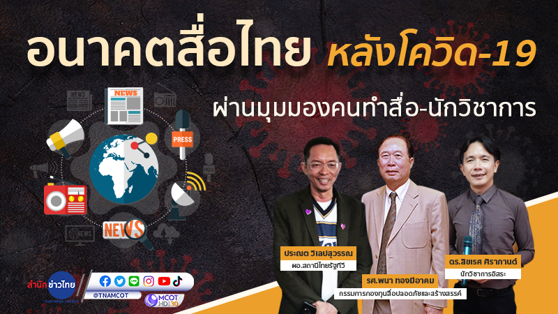 กทม. 16 มิ.ย.- ในยุคที่สื่อสารมวลชน มีการปรับตัวการทำงานจากการเปลี่ยนแปลงอย่างรวดเร็วของเทคโนโลยี มาอย่างหนักช่วงที่ผ่านมา เมื่อเจอกับสถานการณ์โรคระบาดโควิด-19 ยิ่งทำให้เปลี่ยนรูปแบบการทำงาน หลังจากเหตุการณ์นี้กำลังคลี่คลาย อนาคตของสื่อไทยจะเป็นอย่างไร ผ่านมุมมองจากคนทำสื่อและนักวิชาการ